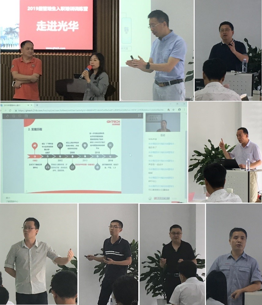 隨著軍訓豪邁地落幕,光華科技管培生入職培訓訓練營第二階段啟動,內容囊括組織架構介紹、企業(yè)文化、產(chǎn)品知識、生產(chǎn)制程、流程解析、職場技能及團隊建設等多個板塊內容;各個板塊分別配置4-8門相關課程,精心打造包含通用管理類、專業(yè)技術類、職業(yè)心態(tài)類等全方位課程內容,邀請公司高管及各領域專家、教授等資深講師進行授課。