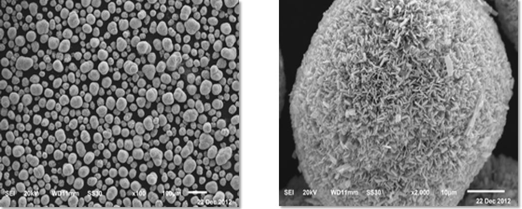 粒徑約40μm的規(guī)則球形顆粒,表面疏松復(fù)雜,獲得極大比表面積,因此大大增加了銅粉和鍍液的接觸面積