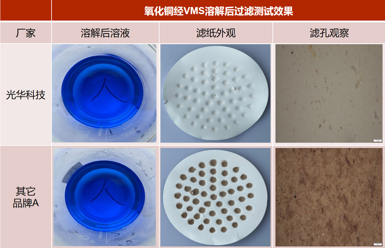 光華科技氧化銅溶解后,鍍液中不溶性物質(zhì)少,可減少銅層粗糙