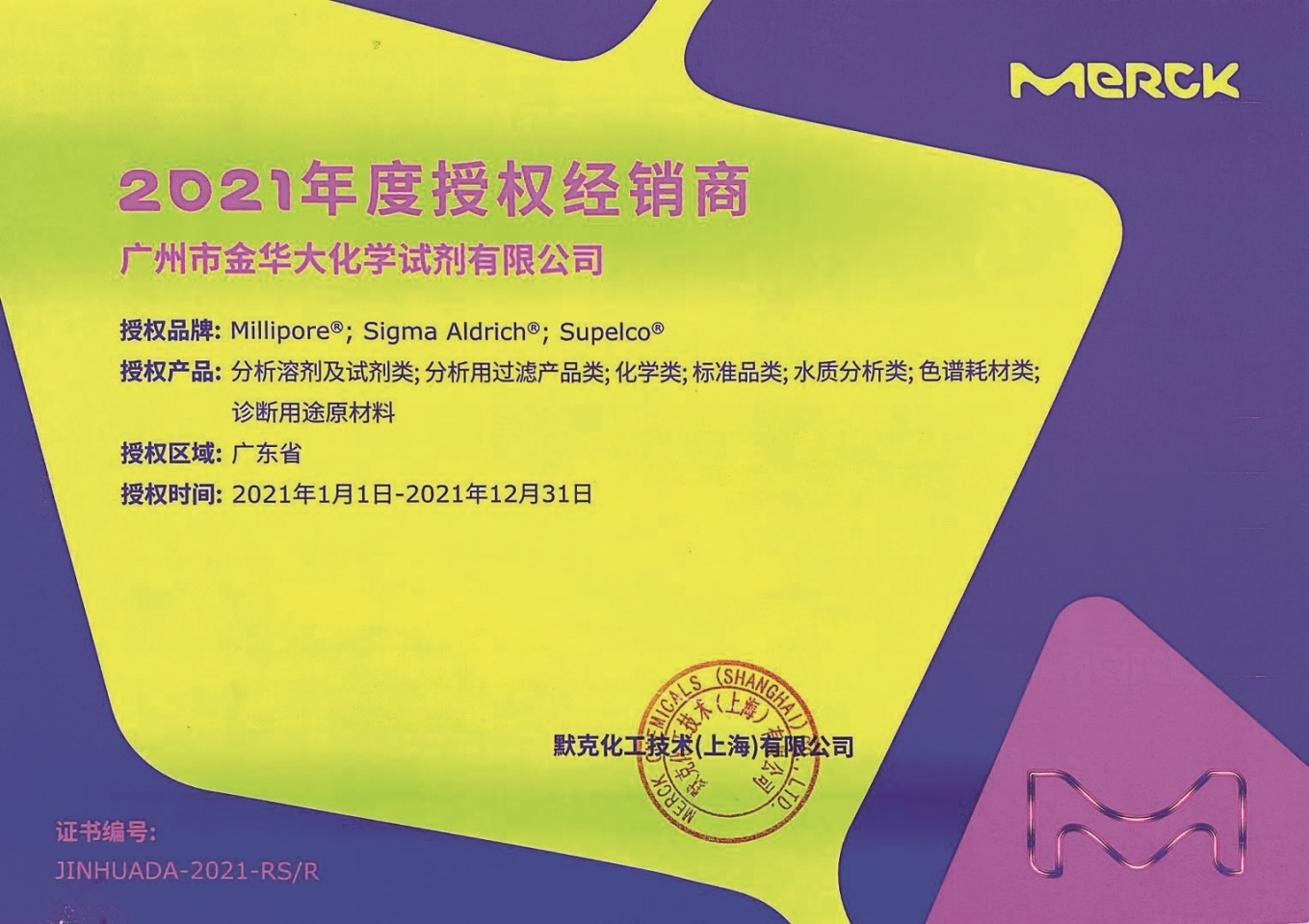 自1997年,金華大與默克Merck建立合作關系,成為其華南區(qū)合作最久、規(guī)模最大的一級代理商。近25年的合作,雙方的關系由緩慢增長期到快速發(fā)展期,再到持續(xù)增長成熟期。光華科技作為上市企業(yè),擁有易制毒、易制爆及危險化學品生產(chǎn)、經(jīng)營、運輸?shù)雀黝愘Y質,經(jīng)營、倉儲、配送管理規(guī)范。金華大作為光華科技旗下子公司,主要承擔營銷相關職能業(yè)務,配有高效穩(wěn)定的服務團隊,合作風險低,業(yè)務能力強,得到醫(yī)藥、日化、電子信息、新能源、新材料、石化能源等領域的標桿客戶的認可與信賴。目前,金華大主要代理默克MERCK的色譜溶劑、藥用輔料、卡爾費休試劑等產(chǎn)品線,重點面向傳統(tǒng)經(jīng)銷商、醫(yī)藥、科研院校、檢測機構、材料制造等領域。