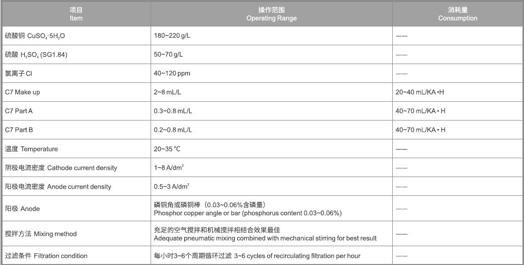 C7 Part B:起整平結(jié)晶細(xì)致的作用。當(dāng)其含量過(guò)低時(shí),只要A劑、開缸劑的含量適當(dāng),其出光速度快。當(dāng)其含量過(guò)量時(shí),只會(huì)提高鍍層整體填平和結(jié)晶更細(xì)致,出光速度仍能保持且不會(huì)出現(xiàn)"蒙沙"、低區(qū)暗啞等不良現(xiàn)象。